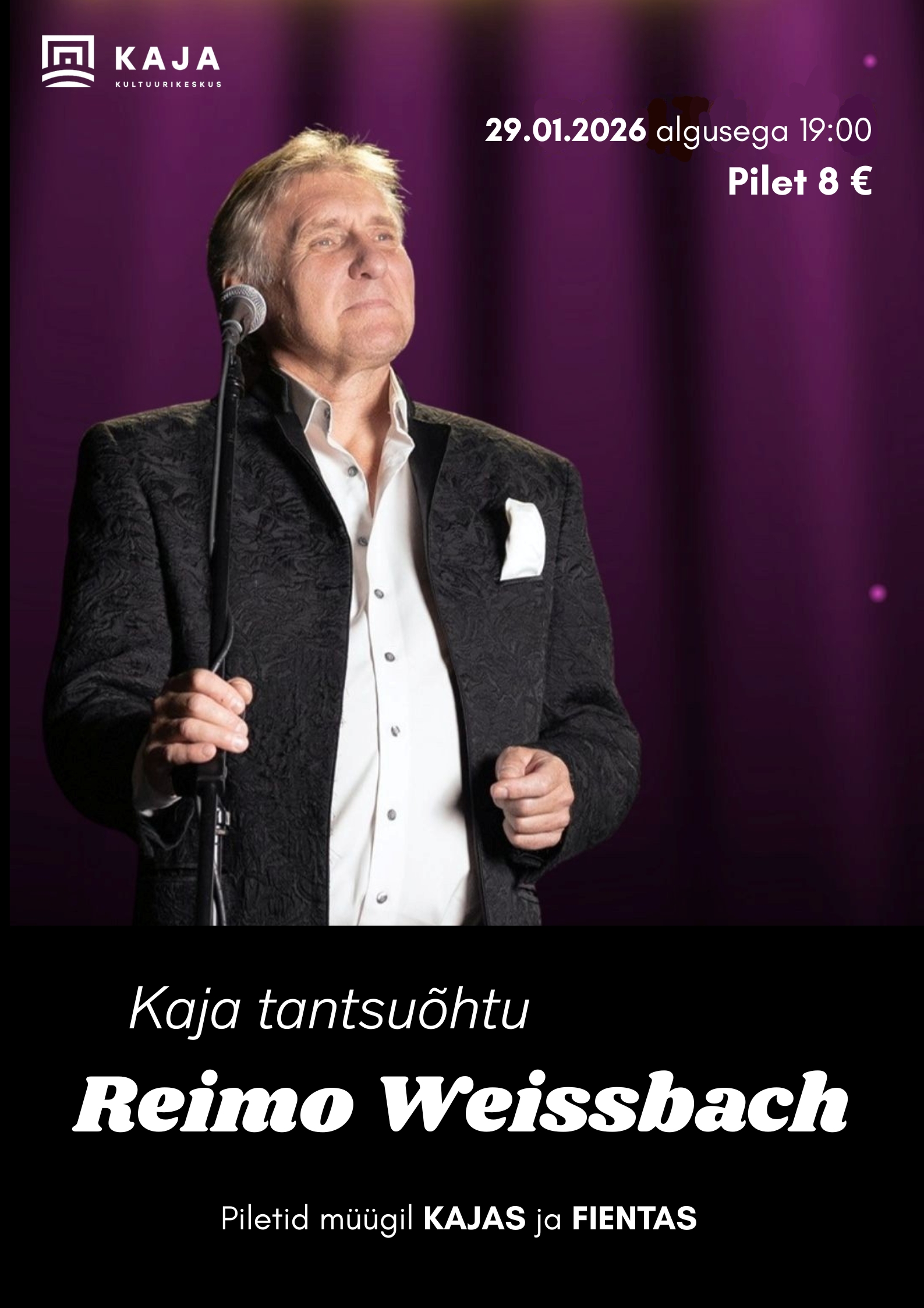Piletid saadaval Fientas ja kohapeal Kaja Kultuurikeskuses.