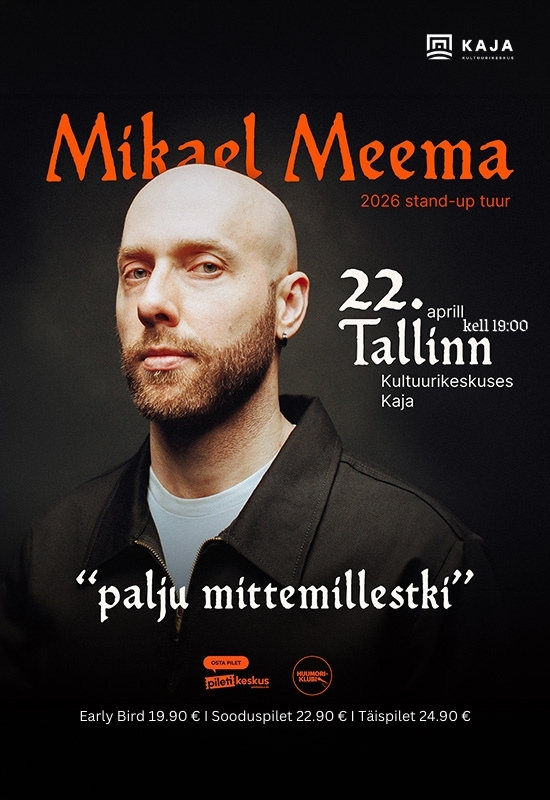 Early bird 19.90 €, sooduspilet 22.90 € ja täispilet 24.90 €Mikael Meema 2026 aasta stand-up tuur “palju mittemillestki”